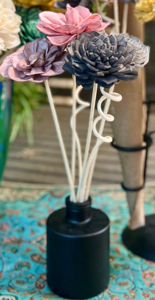 Extend the beauty of clean fragrance throughout your entire life, from your home to your car, with our luxurious diffusion collection. Our signature Wildflower Diffusers feature delightful, hand-dyed blooms made from cassava root by Nicole's Floral Studio. Paired with a stylish glass bottle and reed stem, each diffuser includes one curly stem and three flowers, which we custom-craft in your chosen color scheme to perfectly brighten any room with your favorite Certified Clean, phthalate-free fragrance. For on-the-go aroma, our adorable, customizable Car Diffusers hold 6 ml of our fragrance oil base, adorned with charming dried flowers—perfect for your car or any small, cozy spot. And don't forget the Diffuser Refill! This refill oil keeps your favorite aromas flowing smoothly, designed to pair perfectly with your Wildflower Diffuser Stems or any reeds you have, ensuring the scent adventure never has to end.